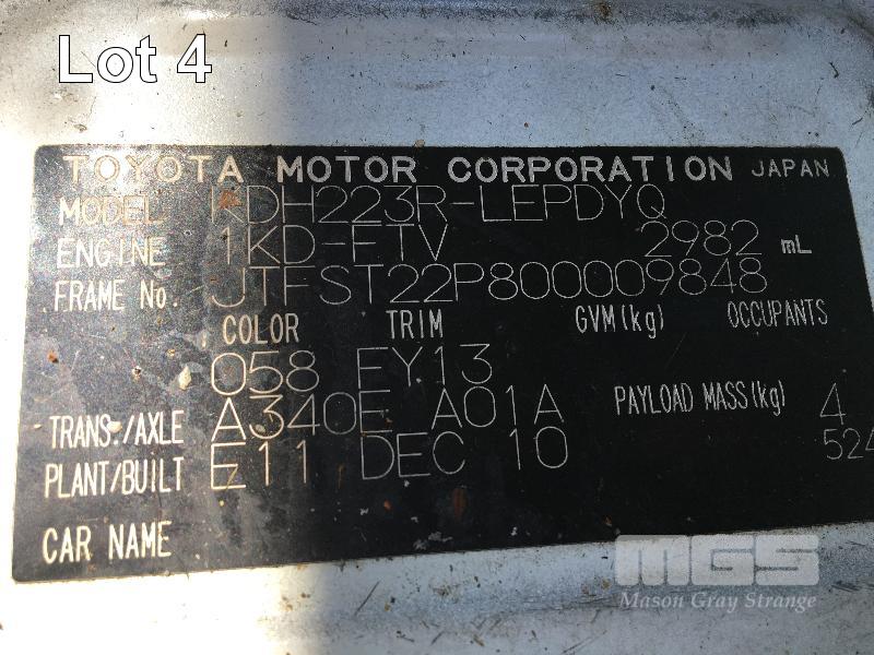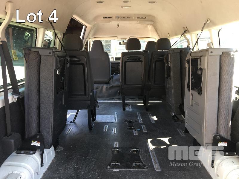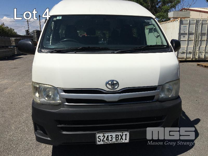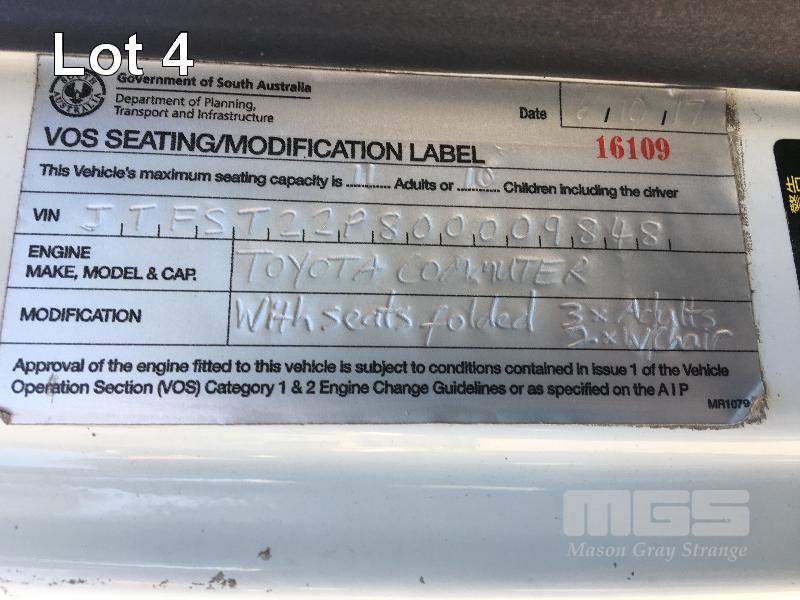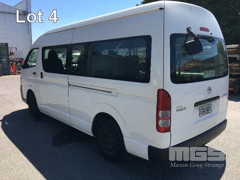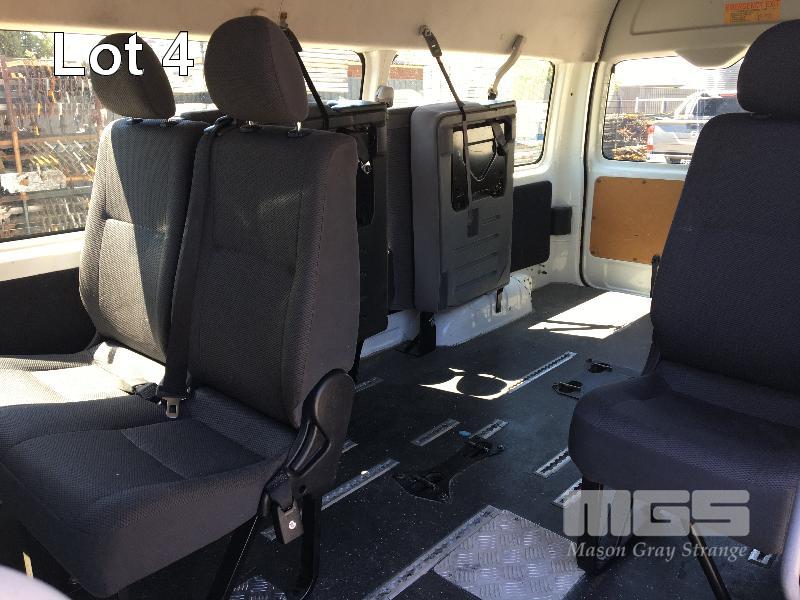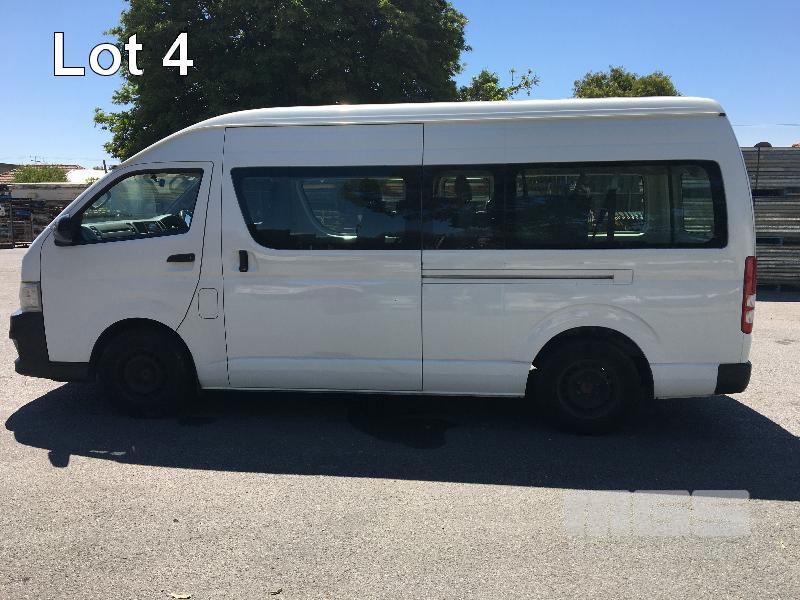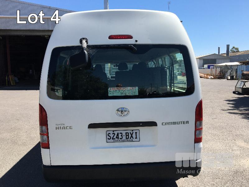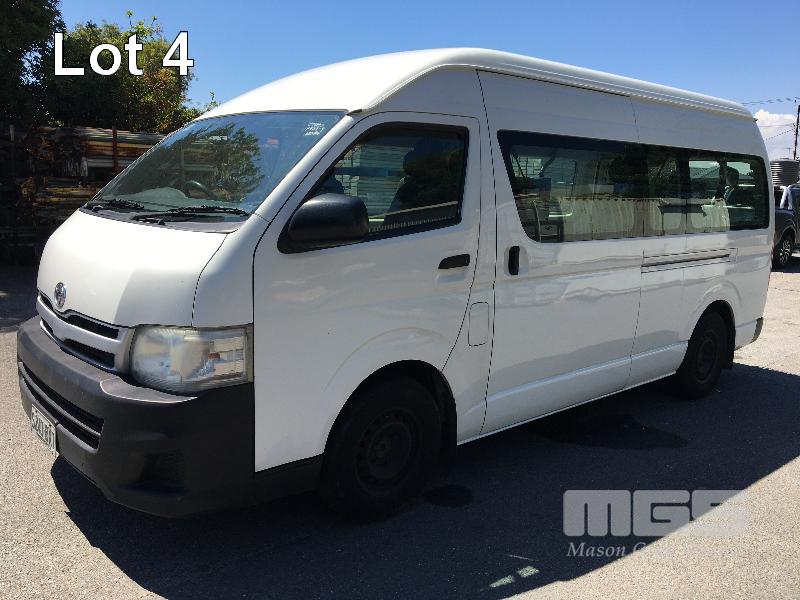 2010 TOYOTA HIACE COMMUTER 200 SER. MINI BUS 2x4 REG: S243 BXI (SA) VIN: JTFST22P800009848 ODO: 315,937kms SHOWING 4 CYLINDER, AUTOMATIC TRANSMISSION, DIESEL, WHITE DUCO, 3 DOORS, 11 SEAT, 2x4 AIR BAG, AIR CON, BLUETOOTH, CD PLAYER, CENTRAL LOCKING, POWER STEERING, POWER WINDOWS, SPARE WHEEL, KEY #6 (WITH PAPERS, WITH 2 KEY/S) CONDITION: BODY - MINOR PAINT SCRATCHES