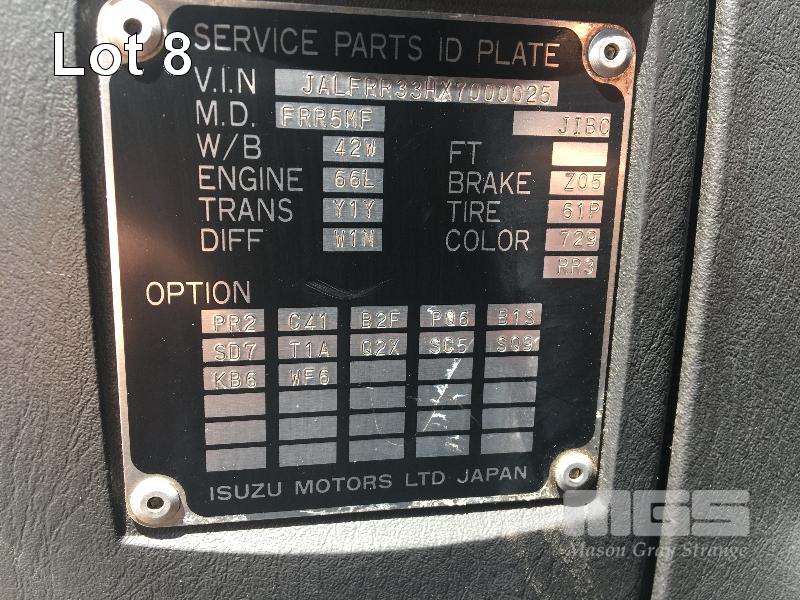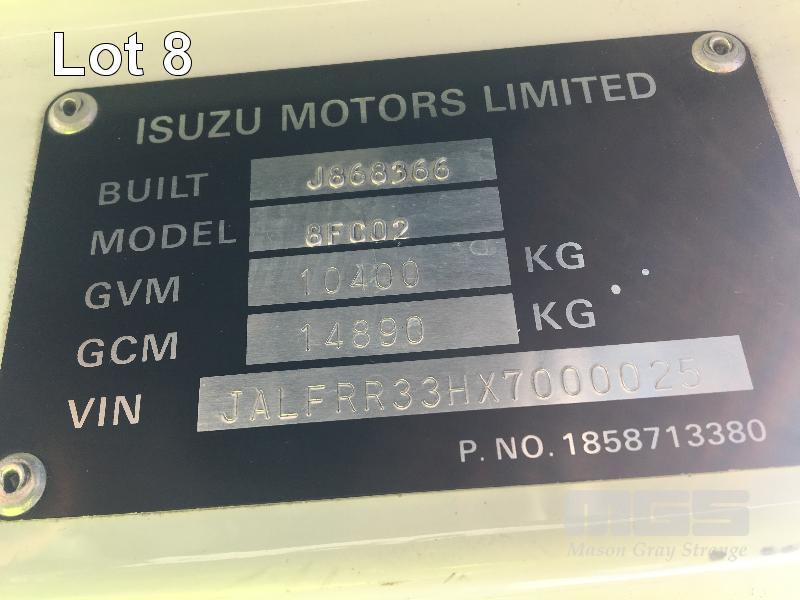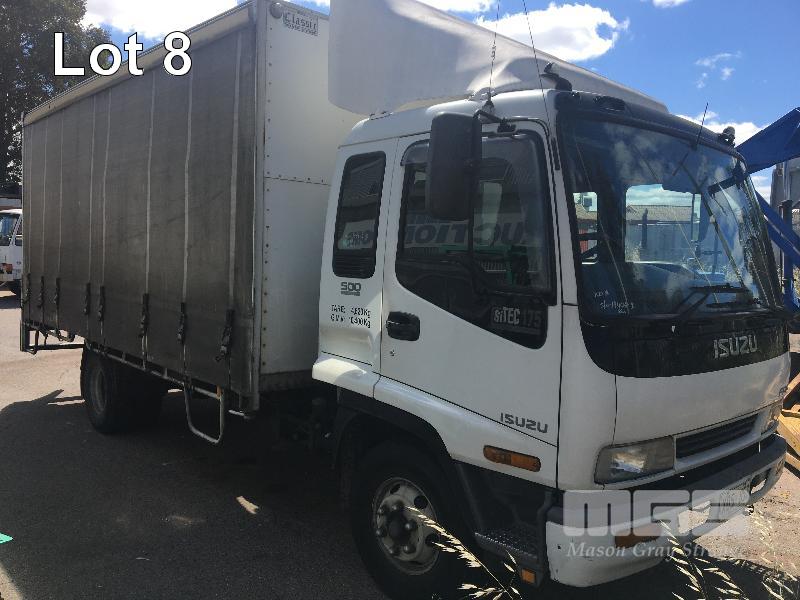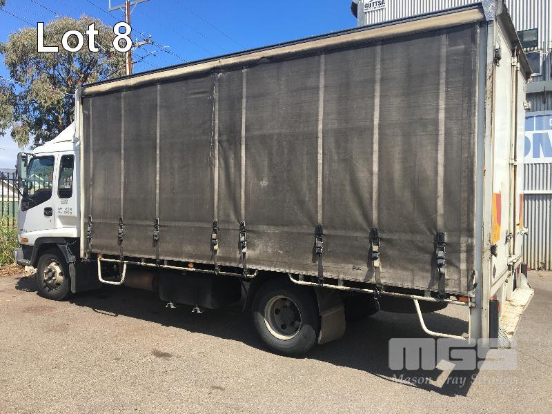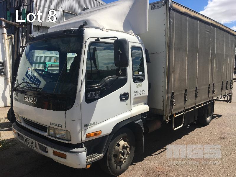 1999 ISUZU FRR500A MEDIUM 4x2 TAUTLINER REG: XOS 857 VIN: JALFRR33HX7000025 ENG: 6HHI-283025 ODO: 823,440kms GVM: 10,400kg GCM: 14,890kg TARE: 4,620kg ISUZU-6HH1-N, 6 CYLINDER, 5 SPEED MANUAL TRANSMISSION, DIESEL, SPRING SUSPENSION, WHITE DUCO, 9.5 R17.5 2 DOORS, 3 SEAT, AIR CON, AIR KIT, SET OF GATES & RATCHET STRAPS CHECKER PLATE STEEL DECK 5100 x 2400mm (W) DOUBLE REAR DOORS DUAL REAR WHEELS, SPARE TYRE, SERVICE HISTORY AVALABLE KEY #4 (WITH PAPERS, WITH 1 KEY/S, WITH OWNER'S MANUAL, WITH SERVICE BOOKS)