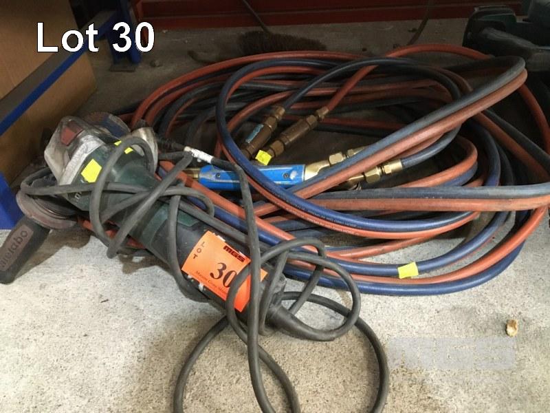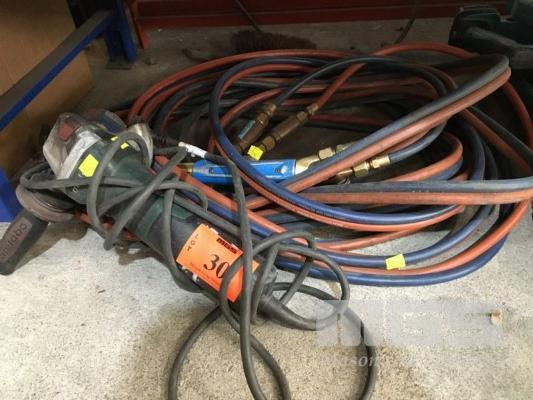 METABO ANGLE GRINDER, 240V & OXY ACETYLENE CUTTING TORCH WITH HOSE & FLASH ARRESTORS