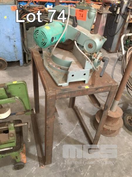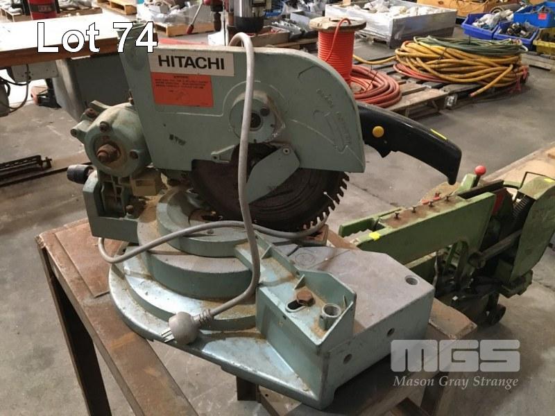 HITACHI MITRE SAW, 254mm, 240V ON STEEL WORK STAND