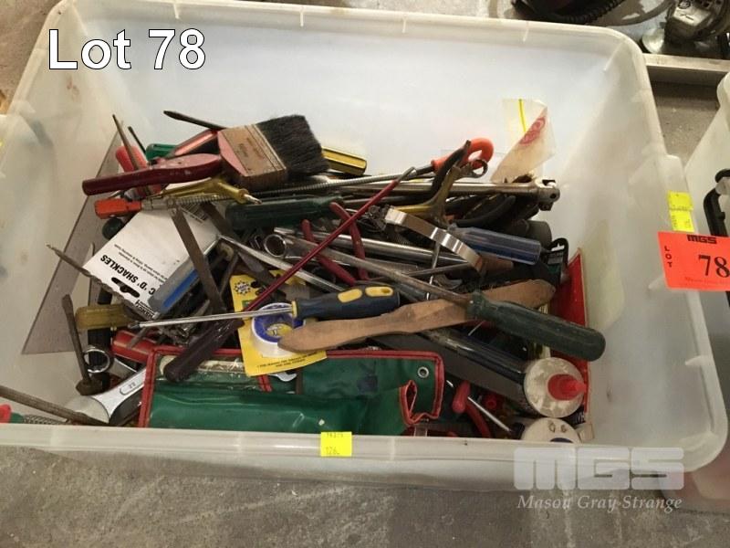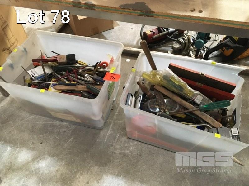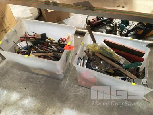 ASSORTED HAND TOOLS INC DRIVERS, SCOCKETS, SPANNERS, PLIERS, SAWS, CUTTER,S FILES, CHISELS, ETC, 2 x TUBS