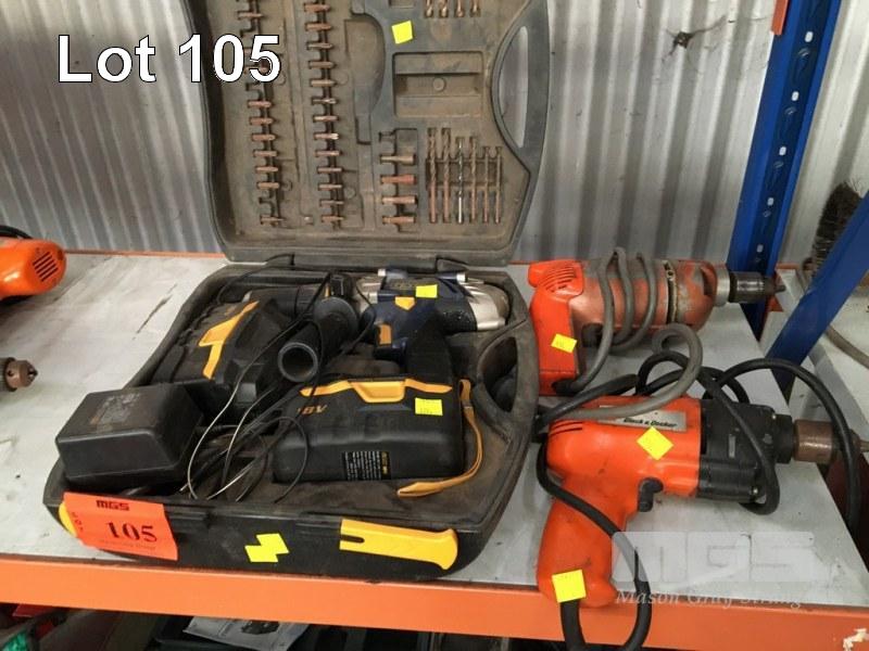 GMC CORDLESS DRILL, 18V WITH 2 x BATTERIES & CHARGER, CARRY CASE, DRILL BITS & DRIVERS & 2 x B&D DRILLS, 240V