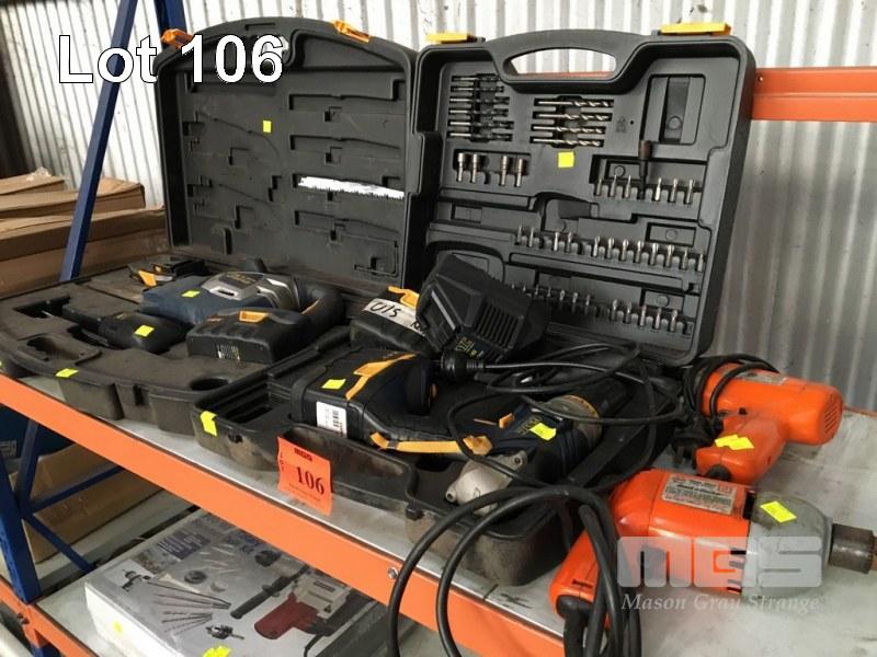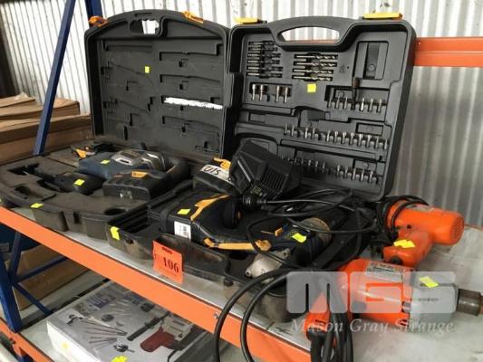 GMC CORDLESS DRILL, 24V WITH BATTERY & CHARGER & 2 x B&D DRILLS, 240V & GMC RECIPRO SAW IN CARRY CASE WITH 2 x BATTERIES & CHARGER