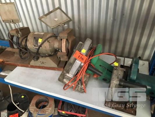 BENCH GRINDER, CROWN, 180mm WITH 2 x CIRCULAR SAWS, HITACHI & MAKITA, ALL FAULTS, 240V