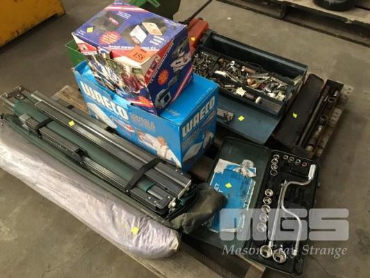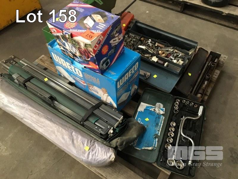 TOOLBOXES & ASSORTED HAND TOOLS, PART SOCKET SETS, WAECO DRINKS CONSOLE COOLER, 12V PORTABLE STOVE, POPE TRAVELLING SPRINKLER, CAMP BED, ETC, 1 x PALLET
