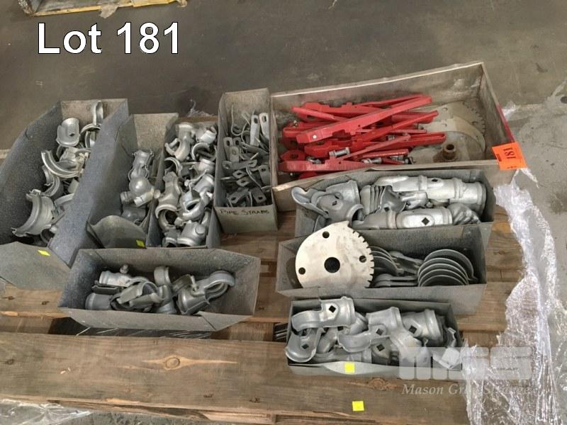 9 x STEEL TRAYS OF ELGATE PIPE FITTINGS, ASSORTED TYPES & SIZES INC VALVE HANDLES & COMPONENTS, 1 x PALLET