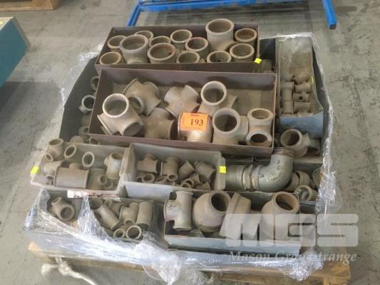 LARGE QUANTITY GALV STEEL PIPE FITTINGS INC TEE, ELBOW & 3 WAY JOINTS, REDUCERS, CAPS, ETC, ASSORTED SIZES IN 13 x TRAYS,
