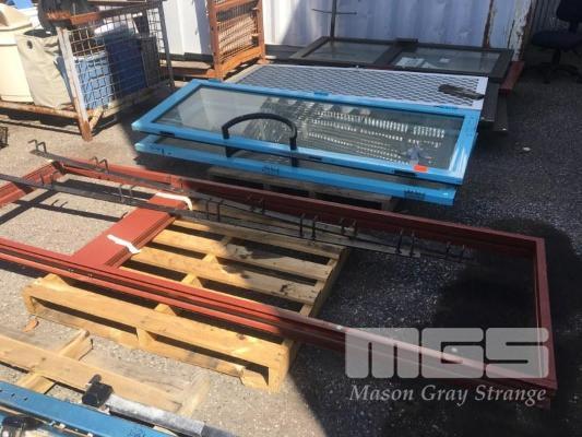 7 x ALUMINIUM DOUBLE GLASS DOORS, NO KEYS, WITH 1 x ALUMINIUM SECURITY SCREEN DOOR