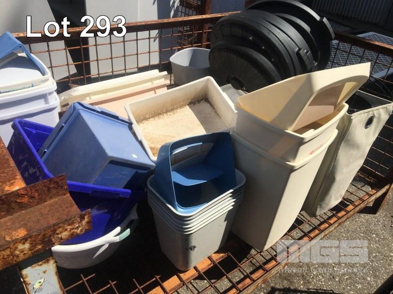 LARGE QUANTITY ASSORTED PVC RUBBISH BINS,