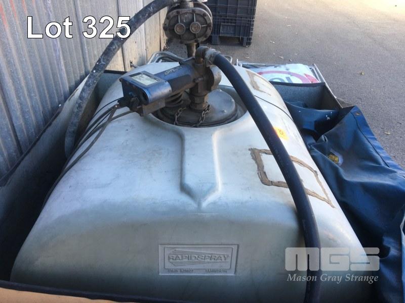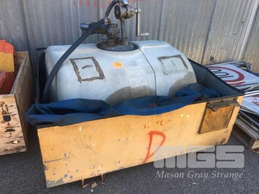 FUEL TRANSPORT TANK, RAPID SPRAY, POLY, 650 LITRE CAP, HAND PUMP & STEEL SPILL BUNTING