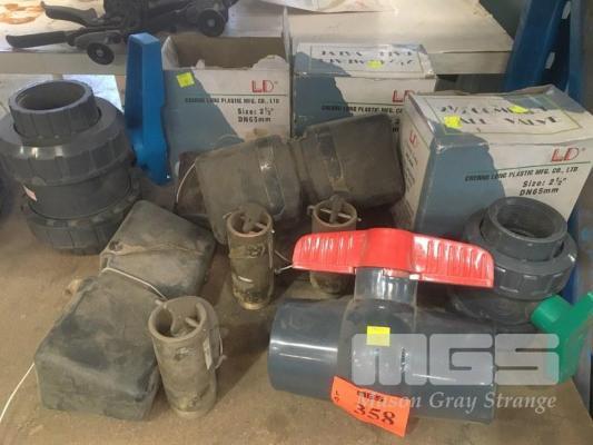PVC BALL VALVES, 3 x 2 1/2", DN65mm, 1 x 2" & 3 x BRASS FLOAT VALVES, 1 1/2 & 1 1/4"