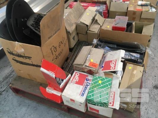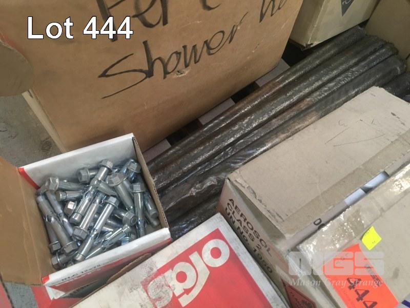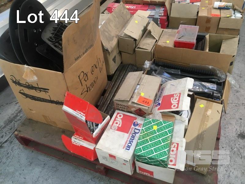 PALLET ASSORTED HARDWARE INC NAILS, DYNA BOLTS, CUTTING DISCS, THREADED ROD, ETC