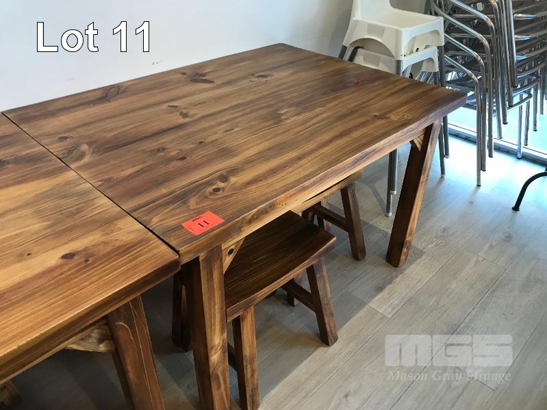 STAINED PINE TIMBER ORIENTAL STYLE DINING SUITE, RECTANGULAR TABLE & 4 x STOOLS 1200 x 1000mm