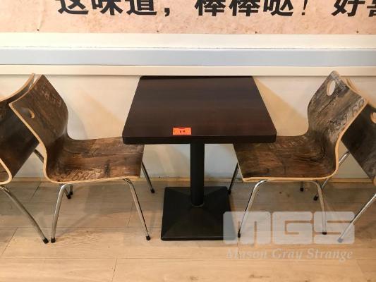 TIMBER LAMINATE SQUARE DINING TABLE, 60 x 600mm & 2 x DECORATIVE PLYWOOD CHAIRS