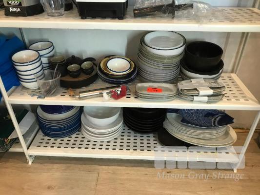 ASSORED CROCKERY, 2 x SHELVES