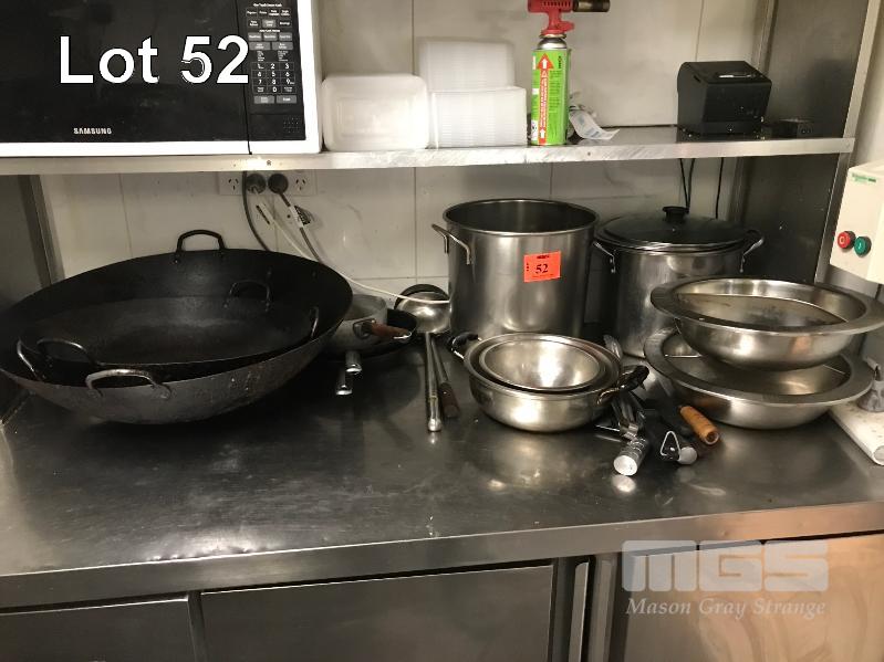 ASSORTED WOKS & STAINLESS POTS & BOWLS