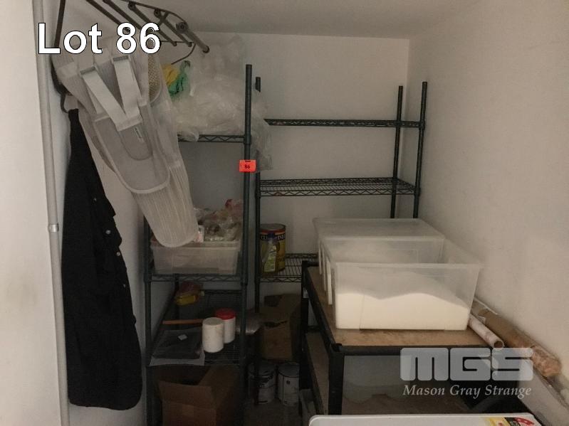 2 x METAL ADJUSTABLE SHELVES, 4 TIER, 1800 x 900 x 300mm & 2 TIER STEEL WORK BENCH & WALL MOUNT CLOTHES RACK