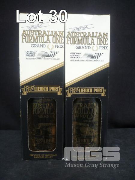 2 x BOTTLES 1985 INAUGURAL AUSTRALIAN FORMULA 1 GRAND PRIX PORT, PETER LIEBICH PORT, BAROSSA
