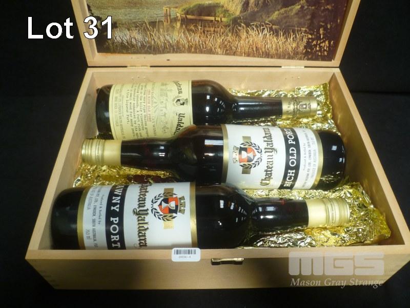 3 x BOTTLES CHATEAU YALDARA PORTS IN TIMBER CASES, INC 1965 RICH OLD PORT, RICH OLD PORT & TAWNY PORT