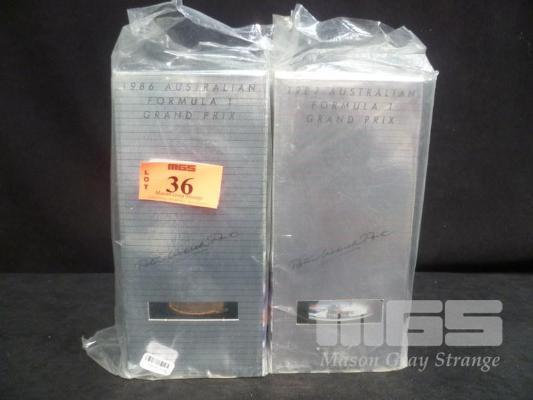 2 x BOTTLES AUSTRALIAN FORMULA 1 GRAND PRIX PORT, PETER LIEBICH PORT, YEARS 1986 & 1987