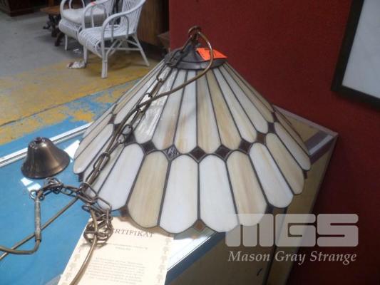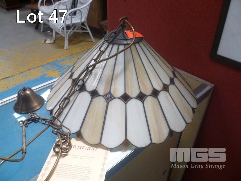 TIFFANY CEILING LIGHT, LEADLIGHT MOD: NIXON 84 x GLASS PARTS CERTIFICATE OF ORIGINAL AMERICAN LAMP IN TIFFANY STYLE (GERMAN WORDING) 52cm DIAMETER