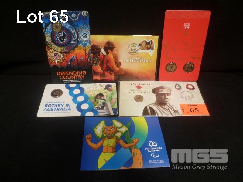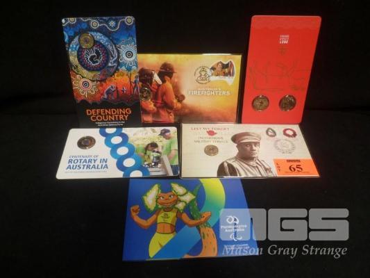 6 X COMMEMORATIVE COIN PACKS ROTARY IN AUSTRALIA, DEFENDING COUNTRY, LEST WE FORGET, 2021 LUNAR SERIES, AUSTRALIA'S FIREFIGHTERS, PARAOLYMPICS