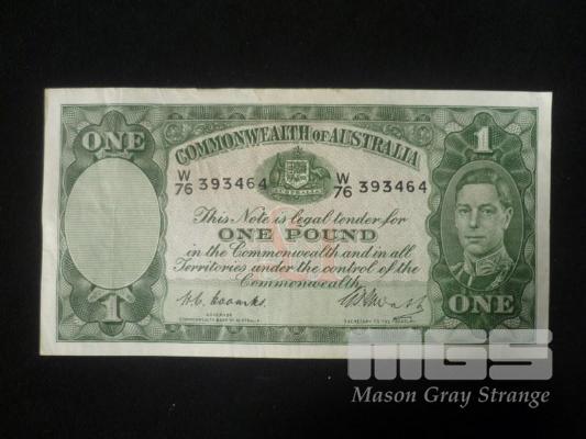 COMMONWEALTH OF AUSTRALIA 1 POUND NOTE, COOMBS/WATTS, W76 393464 VF GRADE
