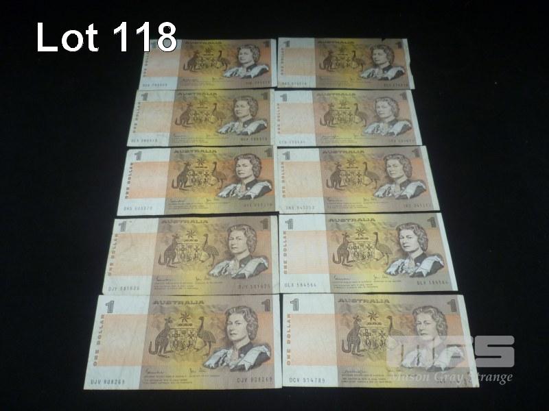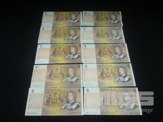 10 x $1.00 PAPER NOTES, CIRCULATED