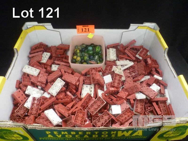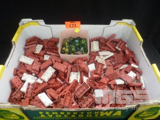 VINTAGE PLASTIC BUILDING BLOCKS & BOX MARBLES