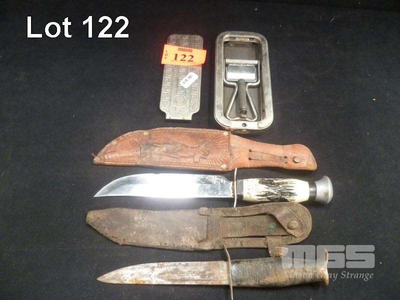 2 x VINTAGE KNIVES & METAL CASED STROPP