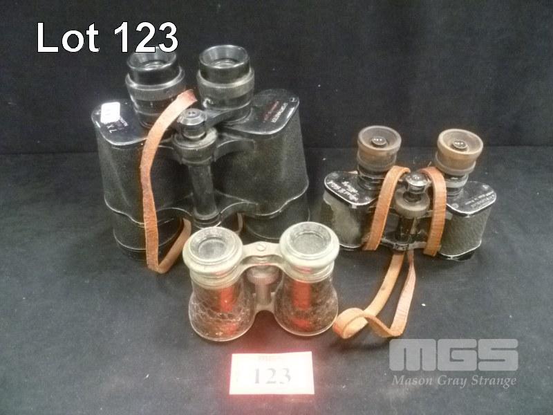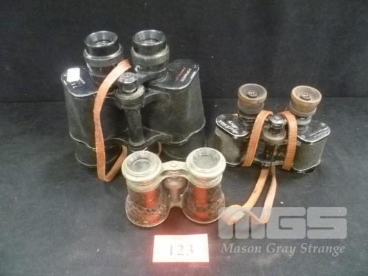 3 x PAIRS VINTAGE BINOCULARS, SPORTSMASTER, 7x50, LUMBLUX, MADE IN FRANCE, ETC