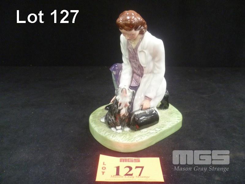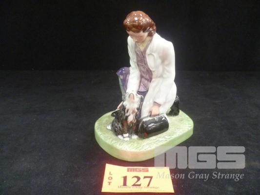 ROYAL DOULTON FIGURINE "TOWN VETERINARY" OF LADY VET WITH DOG, 14cm (H)