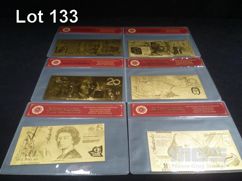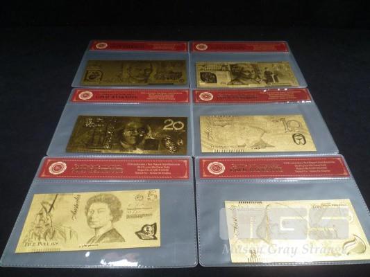 $5 TO 100 DOLLAR SET OF 24K GOLD COVERED NOVELTY NOTES SET OF 7 INCLUDES COMMEMORATIVE NOTES