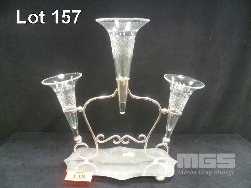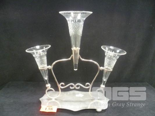 SILVER PLATED EPERGNE WITH 3 x CRYSTAL INSERTS