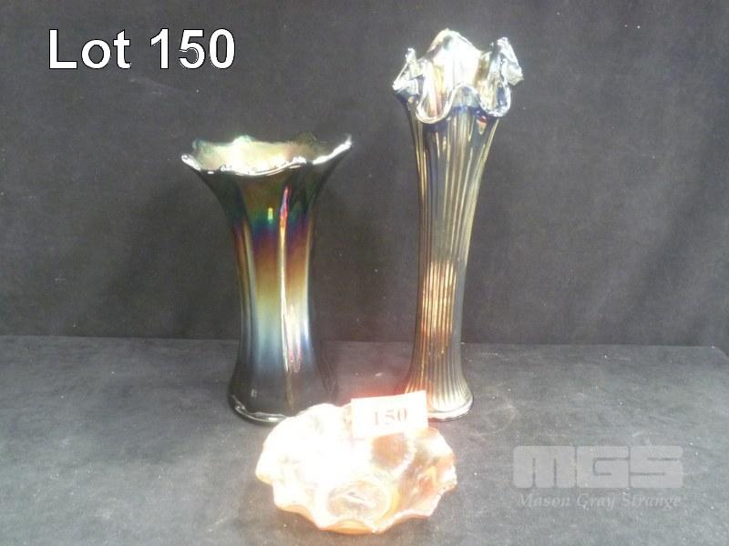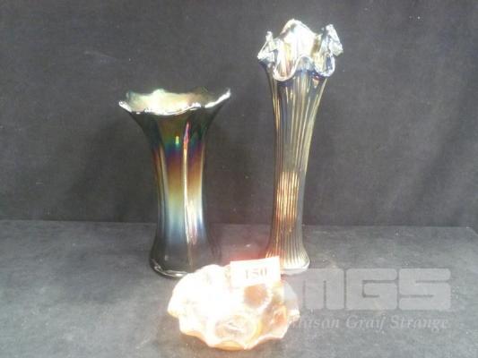 ASSORTED CARNIVAL GLASS INC KANGAROO BOWL, (TALLEST 31cm (H))