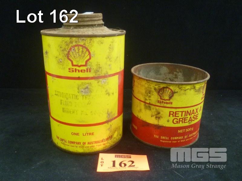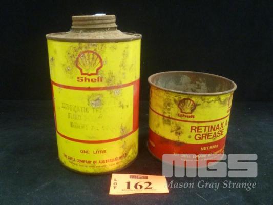SHELL RETINAX A GREASE TIN, (NO TOP) & SHELL AUTOMATIC TRANS FLUID TIN
