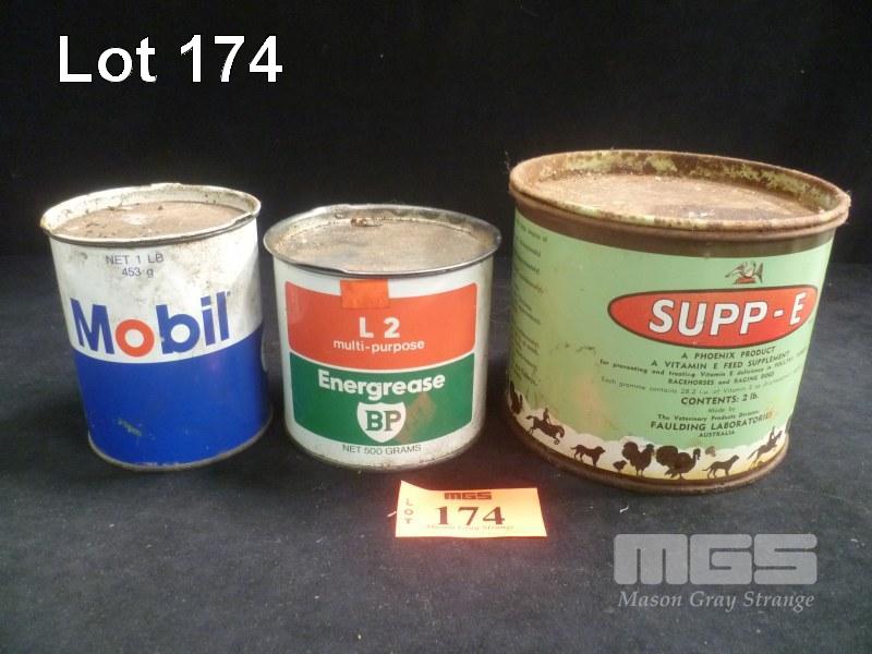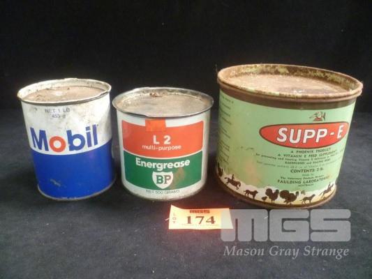 MOBIL 1 POUND GREASE TIN, BP GREASE TIN, SUPP-E PRODUCE TIN