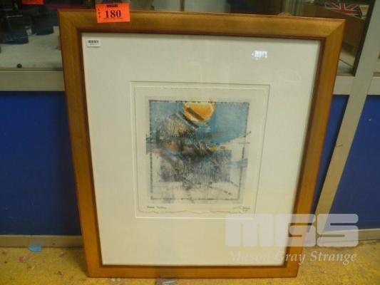 FRAMED WATER COLOUR, BURIAL PLATFORM, SIGNED G WAKADU 8.87, 52 x 61cm