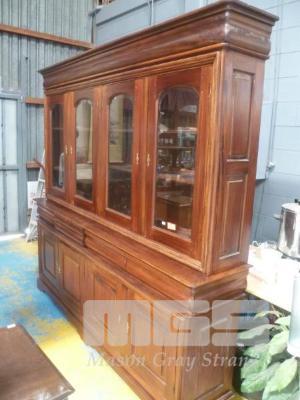 REPRODUCTION ANTIQUE MAHOGANY 2 PIECE WALL UNIT, 9 x GLAZED DOORS, INTERNAL SHELVES, 4 DRAWER/DOOR UNDERSTORAGE