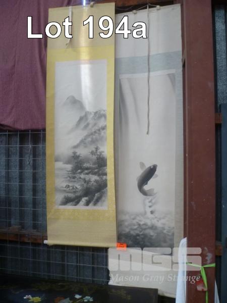 2 x ORIENTAL WALL SCROLLS, 202 & 182cm (L)