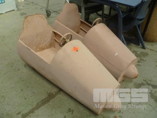 PAIR VINTAGE CARNIVAL RIDE/CAROUSEL TIN CARRIAGES