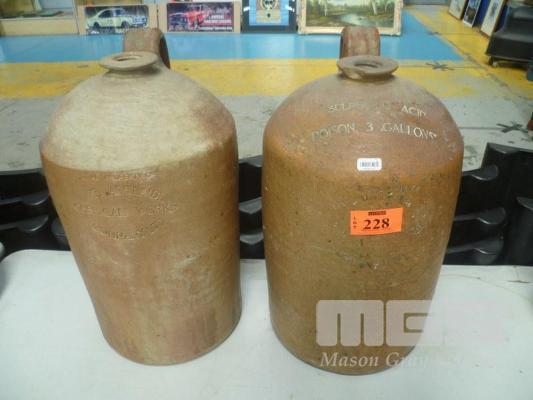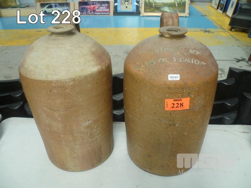2 x LARGE STONEWARE JUGS INC ADELAIDE CHEMICAL WORKS CO, SULPHURIC ACID POISON 3 GALLONS, ADELAIDE CHEMICAL WORKS COMPANY LTD