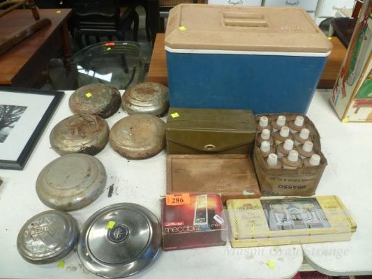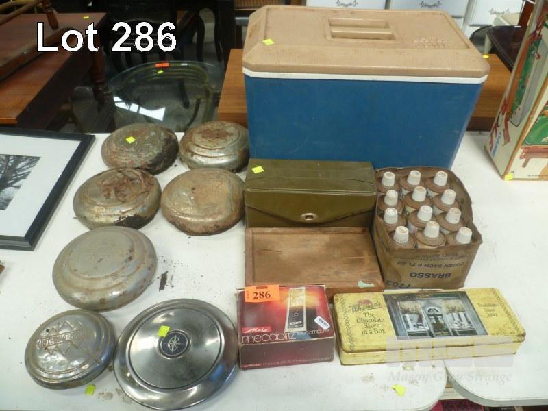 COLLECTION 8 TRACK TAPES, DOZEN 6 FLUID OUNCE BRASSO TIN, CAMERA FLASH, FISHING TACKLE, ETC