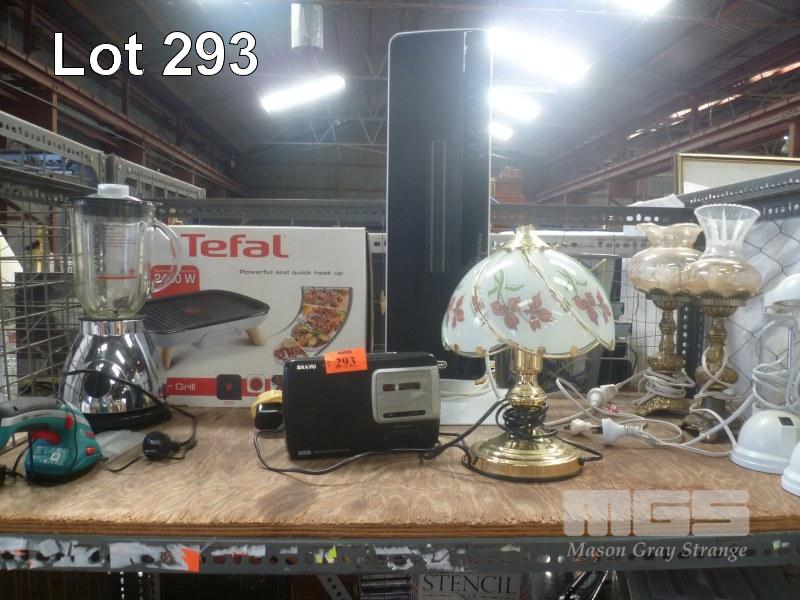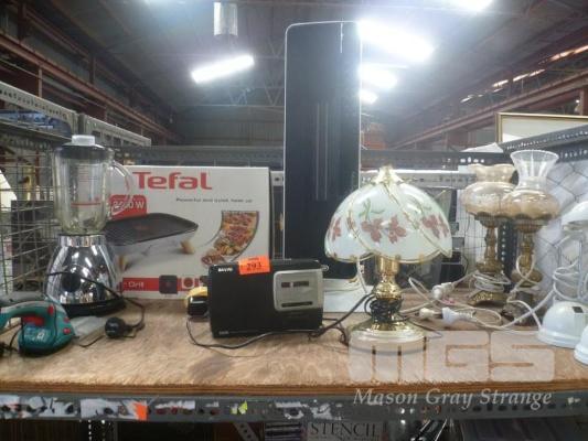HOUSEHOLD ELECTRICAL INCLUDING DELONGHI CERAMIC HEATER, TEFL GRILL, KAMBROOK VITAMIZER, BOSCH GARDEN TRIMMER, SANYO AM/FM PORTABLE RADIO ETC