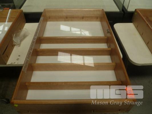 OAK FRAMED, PERSPEX FRONTED LOCKABLE WALL MOUNT DISPLAY CABINET, WITH KEY & INTERNAL SHELVES, 100cm x 62cm x 15cm (D)
