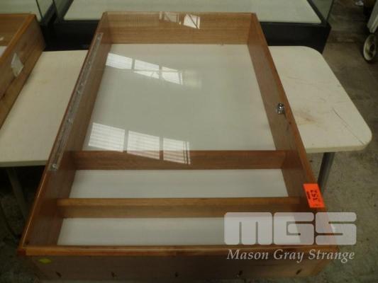 OAK FRAMED, PERSPEX FRONTED LOCKABLE WALL MOUNT DISPLAY CABINET, WITH KEY & INTERNAL SHELVES, 100cm x 62cm x 15cm (D)
