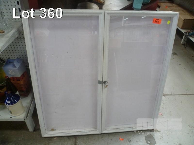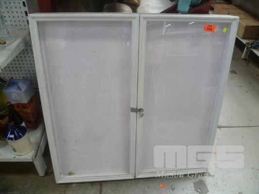 DISPLAY CABINET, GLASS TOP 2 DOOR, SINGLE DRAWER UNDER STORAGE, 116cm (D) x 48cm (H) x 105cm (NO KEYS)