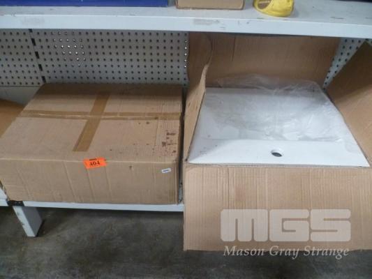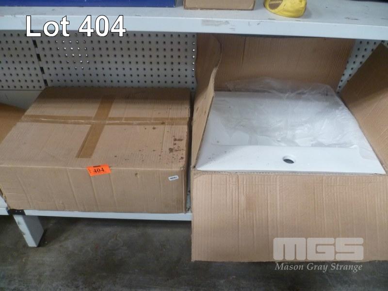 PAIR OF SQUARE, ABOVE COUNTER, CERAMIC VANITY SINK BOWLS, SINGLE TAP HOLE, OVERFLOW