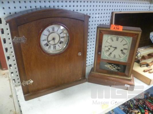 2 x MANTLE CLOCKS, WATERBURY ETC, TALLEST 44cm (H)