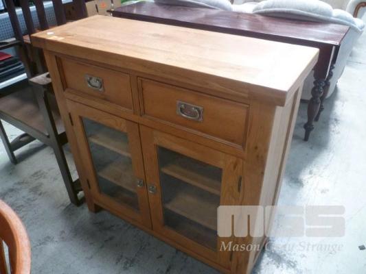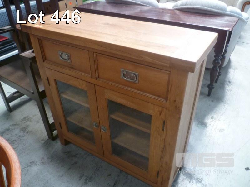TIMBER CABINET, 2 x GLAZED DOORS, 2 DRAWER, INTERNAL SHELVES
